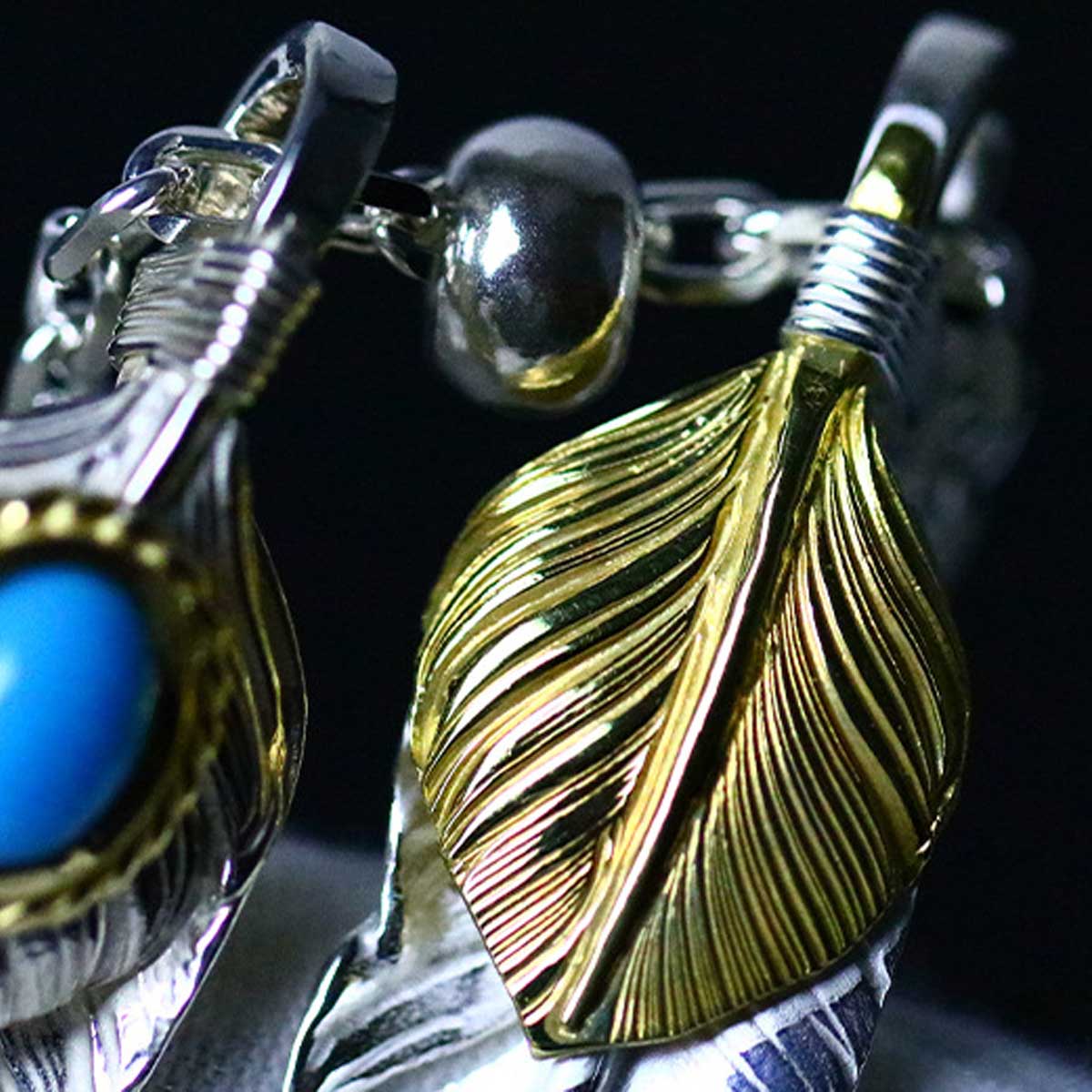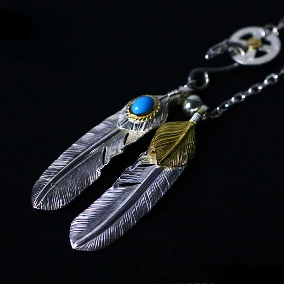 フェザー復刻好きにはオススメです18金ハート特大フェザー上銀金縄TQ特大フェザーフェザーセット