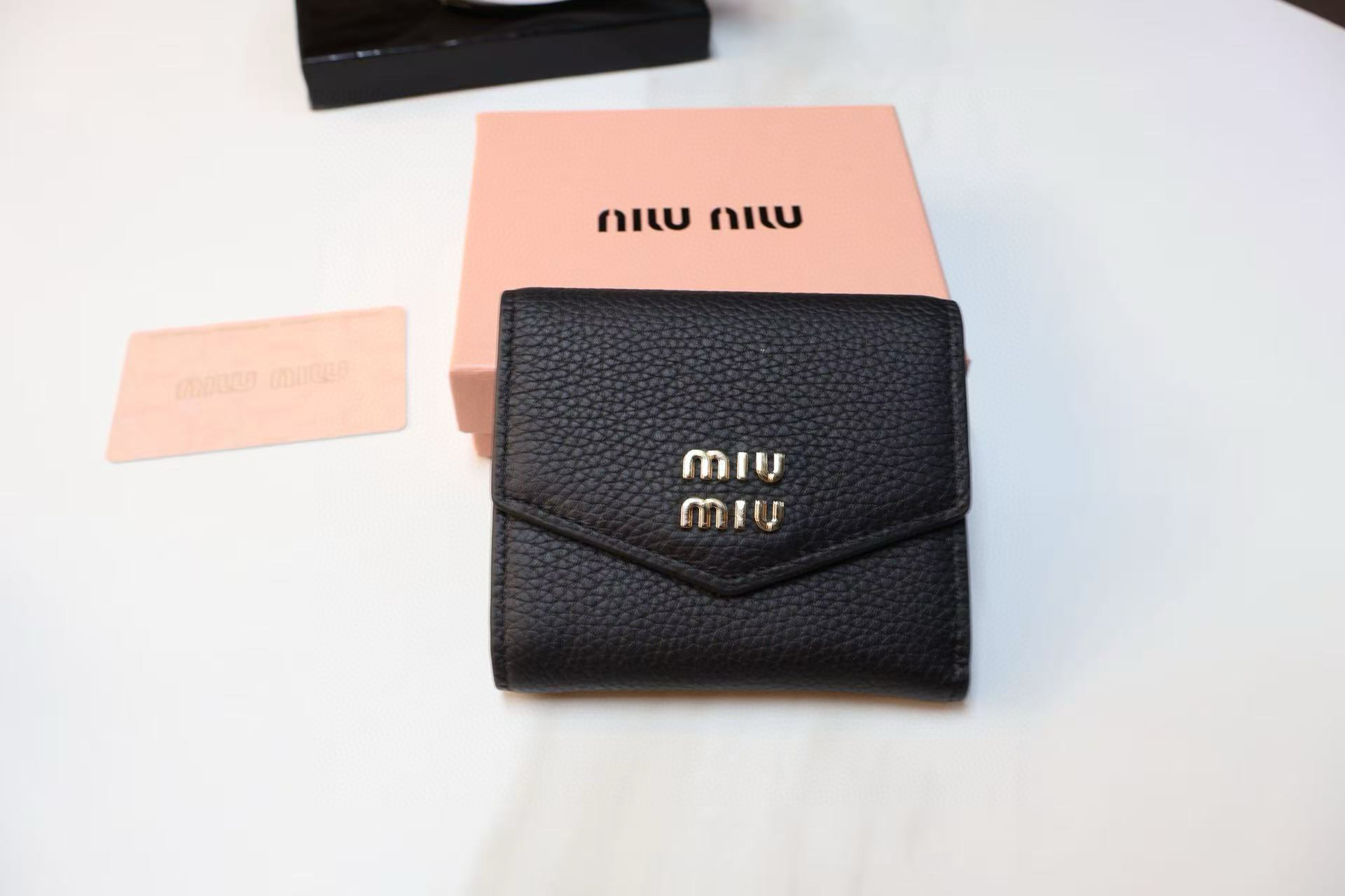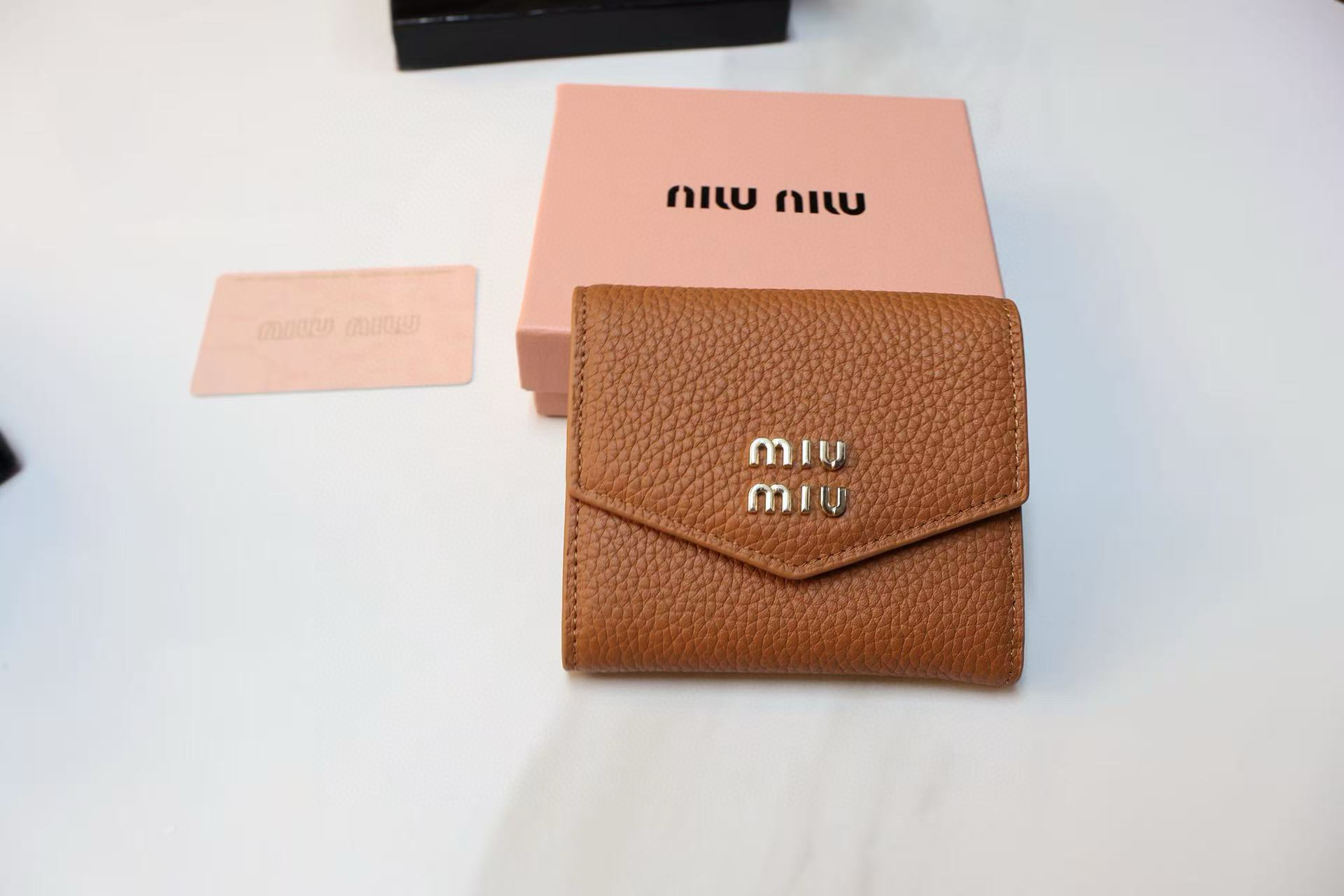 MIUMIU ヴィッテロダイノレザーフラップ付折り財布